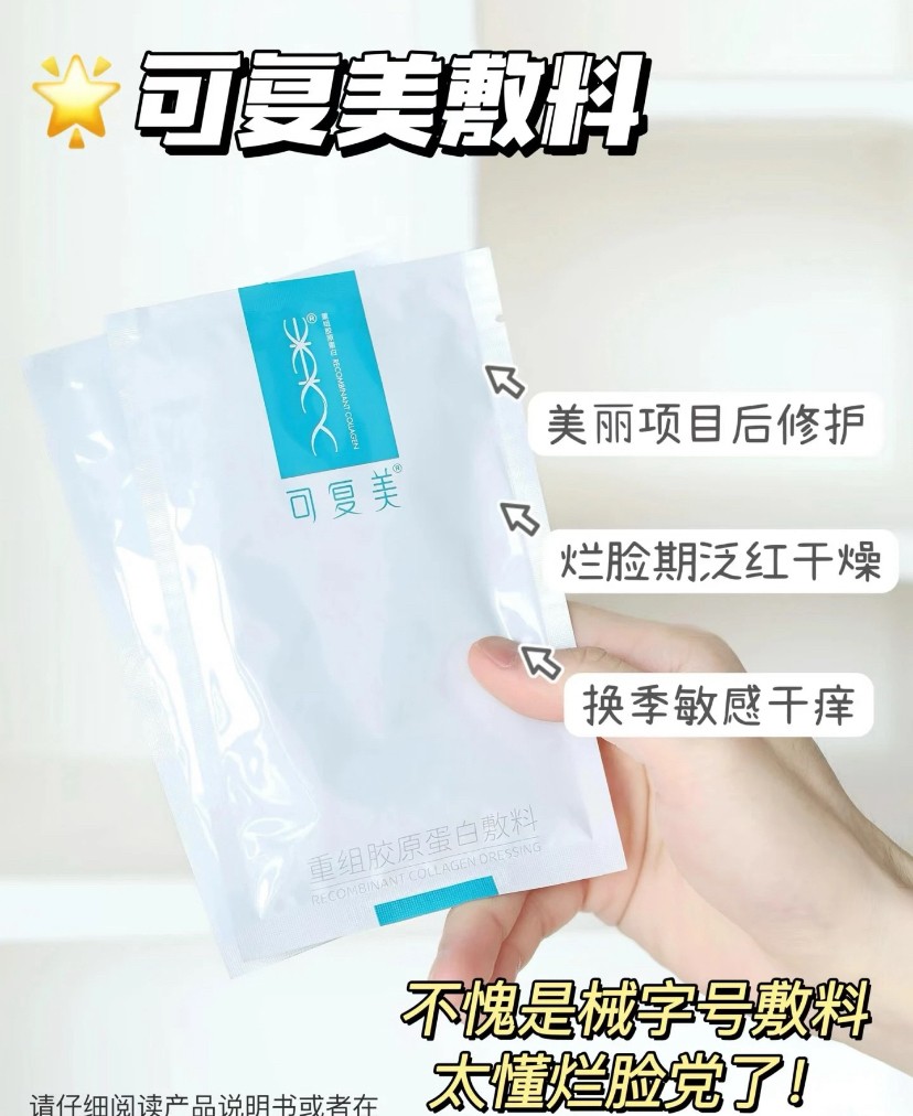可复美 重组胶原蛋白敷料面膜 蓝膜 5片入