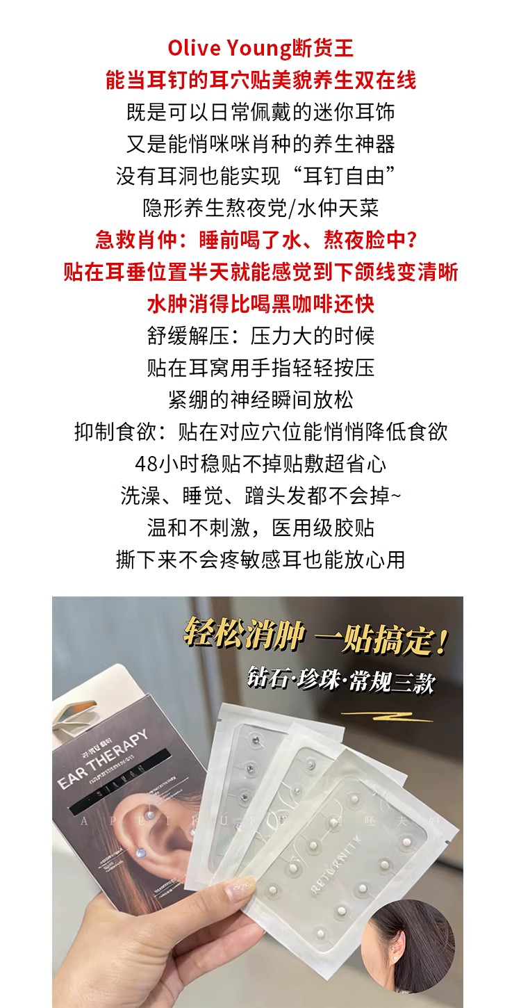 小韩消肿神器~韩国Returnity 耳部穴位按摩贴 提拉线条 促进循环 缓解压力 抑制食欲 10贴一盒