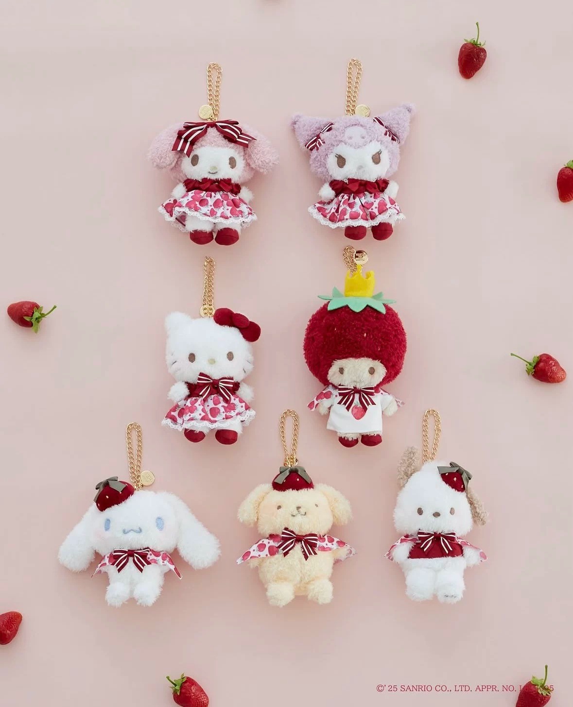 日本 三丽鸥 sanrio 草莓联名 mdf 毛绒 挂件 kitty