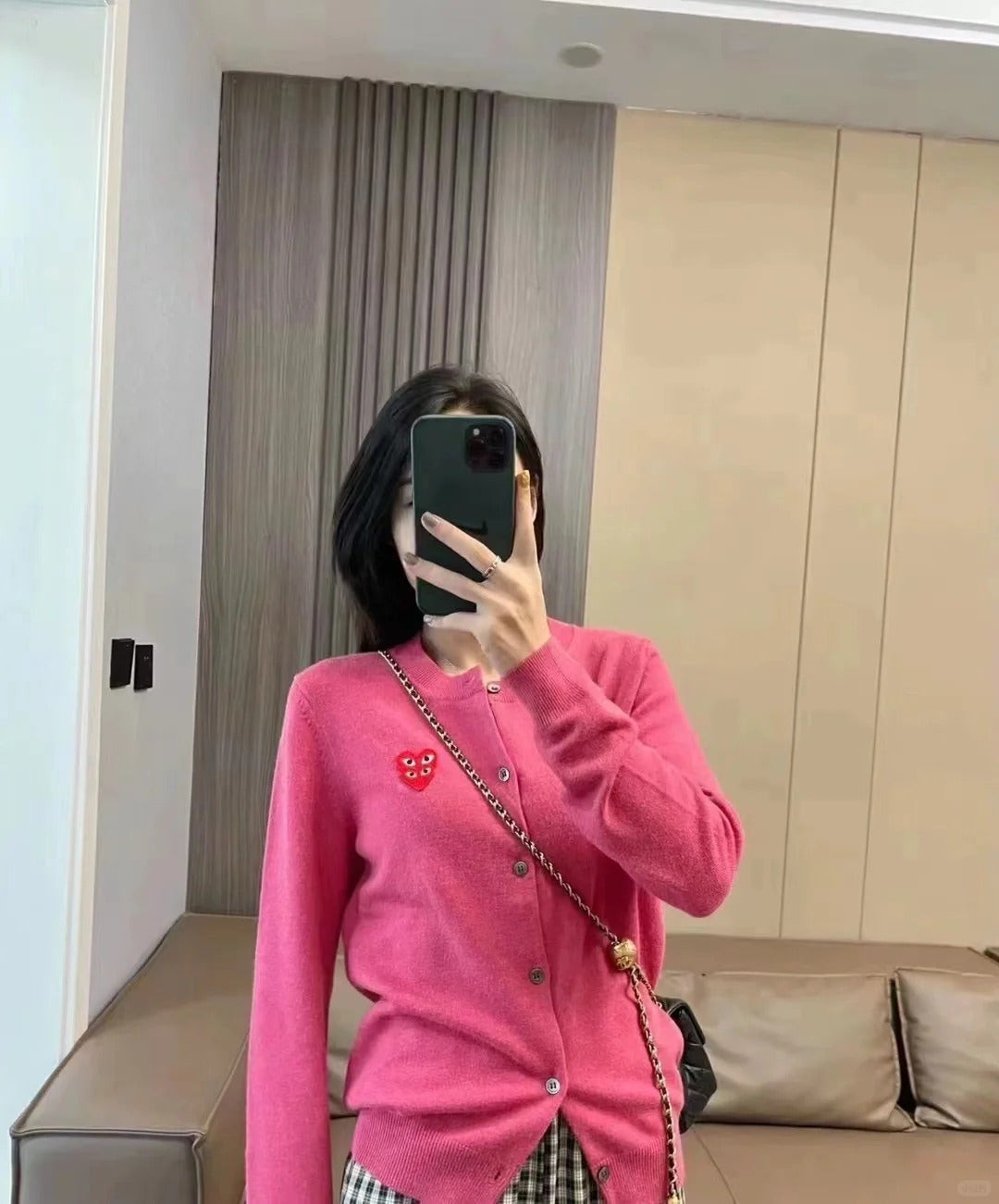 日本 川久保玲开衫 圆领 叠心 玫粉色 超级火爆 限时95折