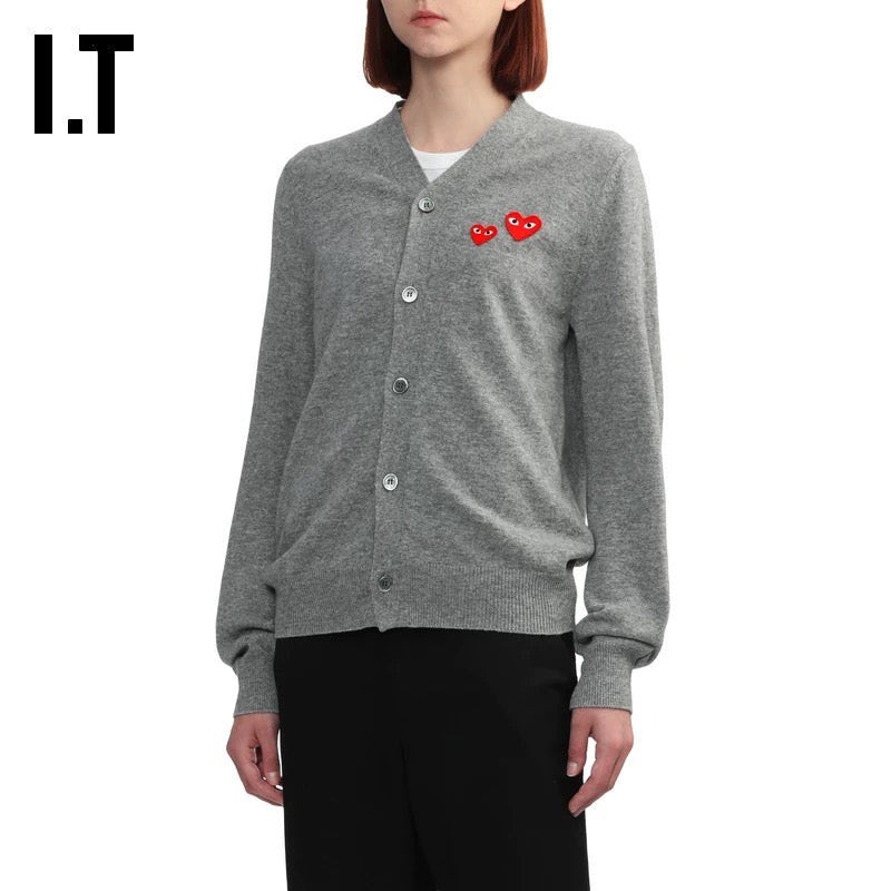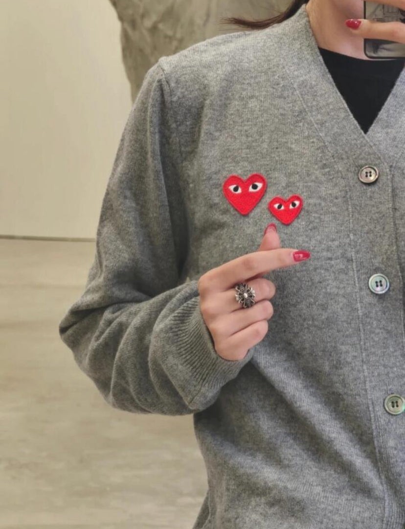日本 川久保玲开衫 V领 开衫 浅灰色 双红心 新款不分男女了 超级难买 限时95折