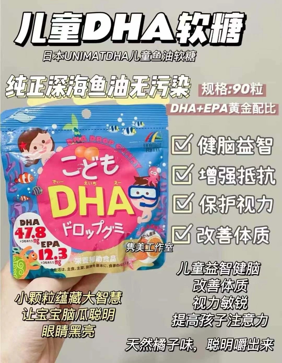 日本 unimat 儿童 DHA 深海鱼油软糖 聪明亮眼 90粒