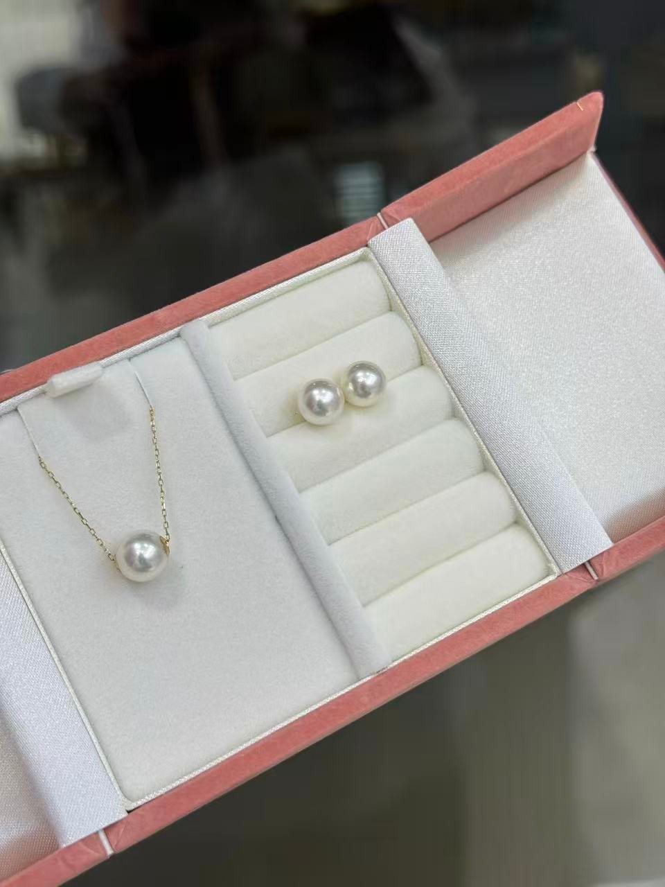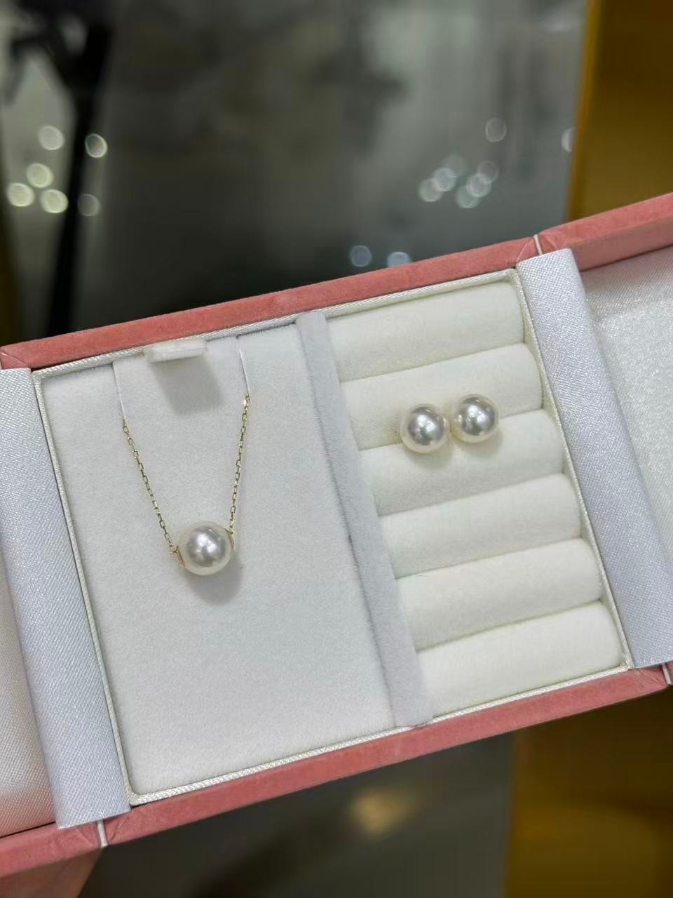 日本珠宝 送礼套装 项链+耳钉 套装 妥妥的ok! 8-9mm 路路通 akoya 海水珠18k金项链45cm长度 天女珠光