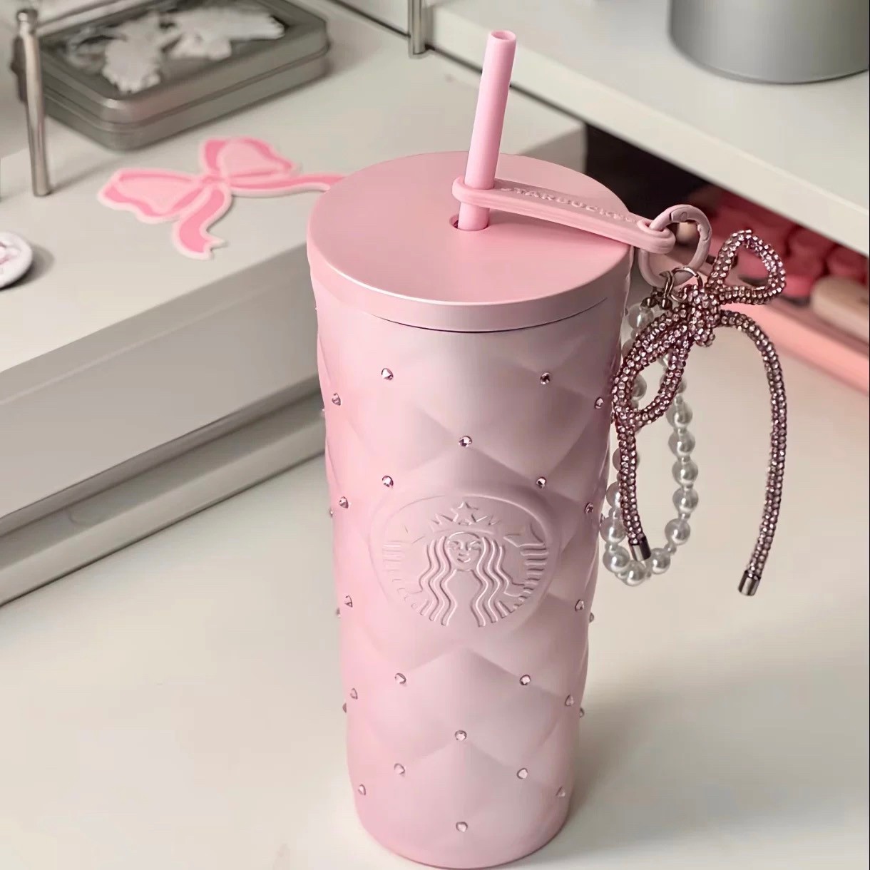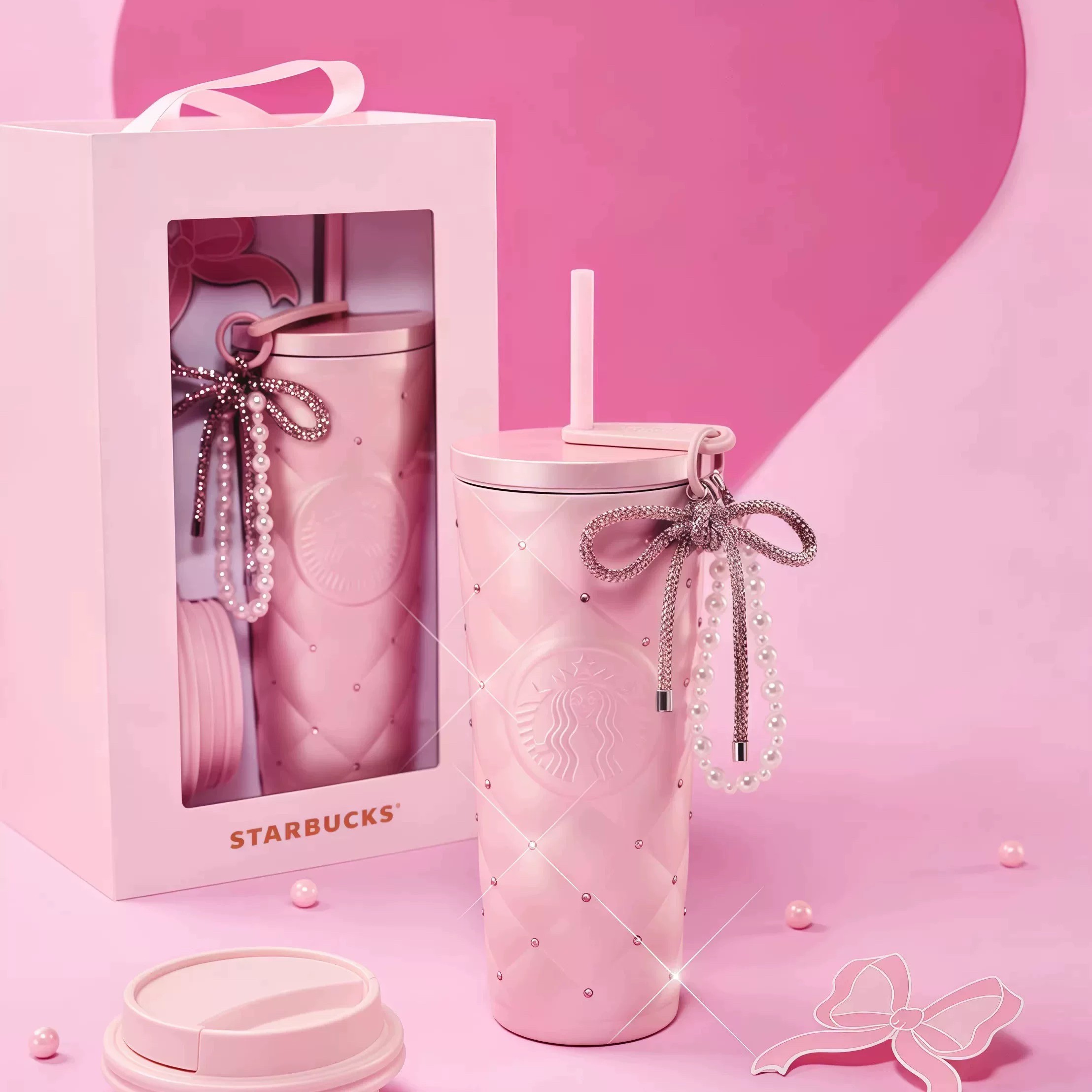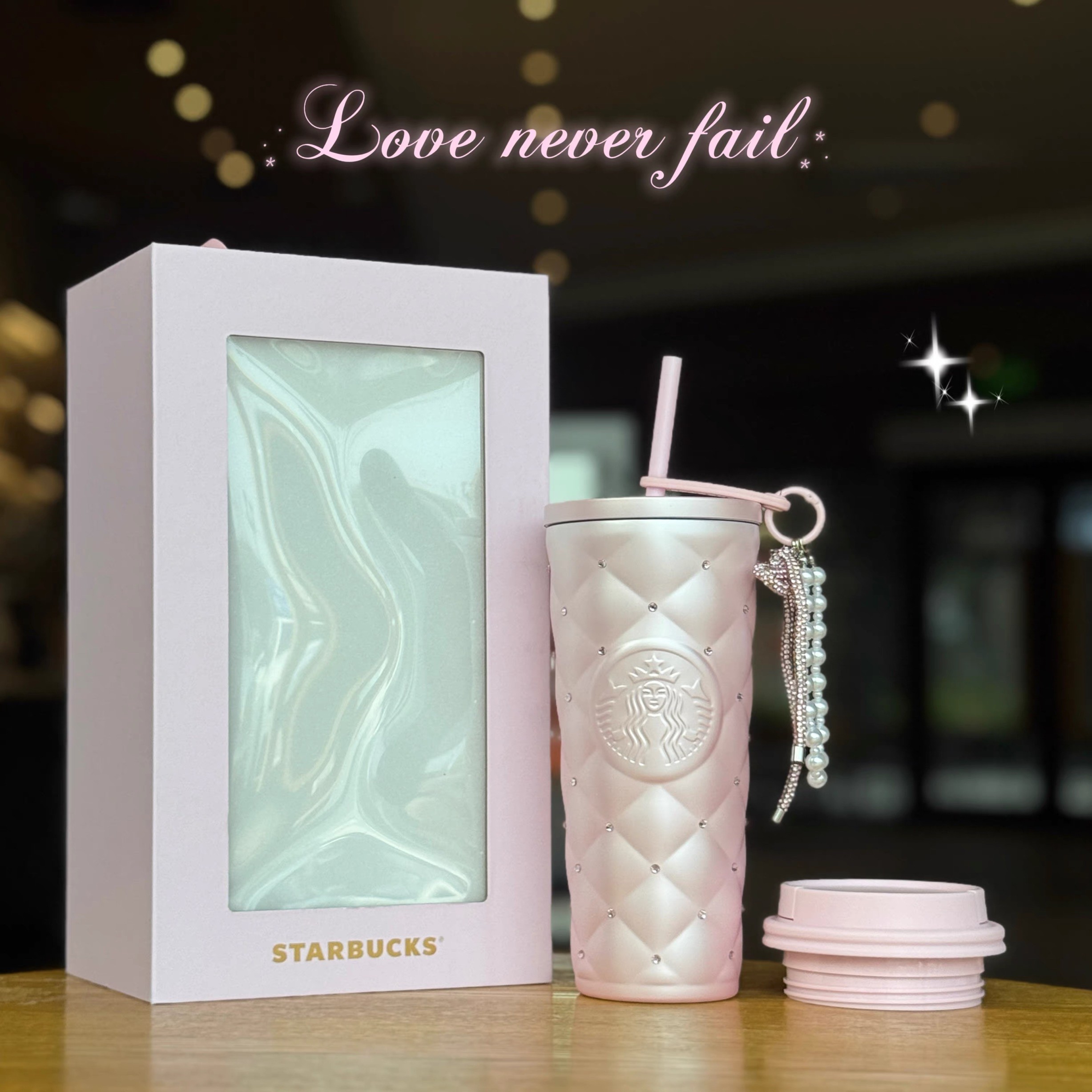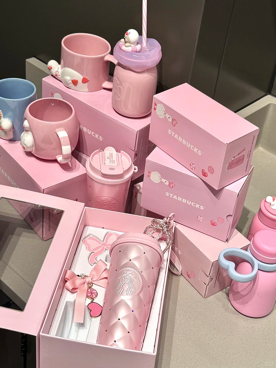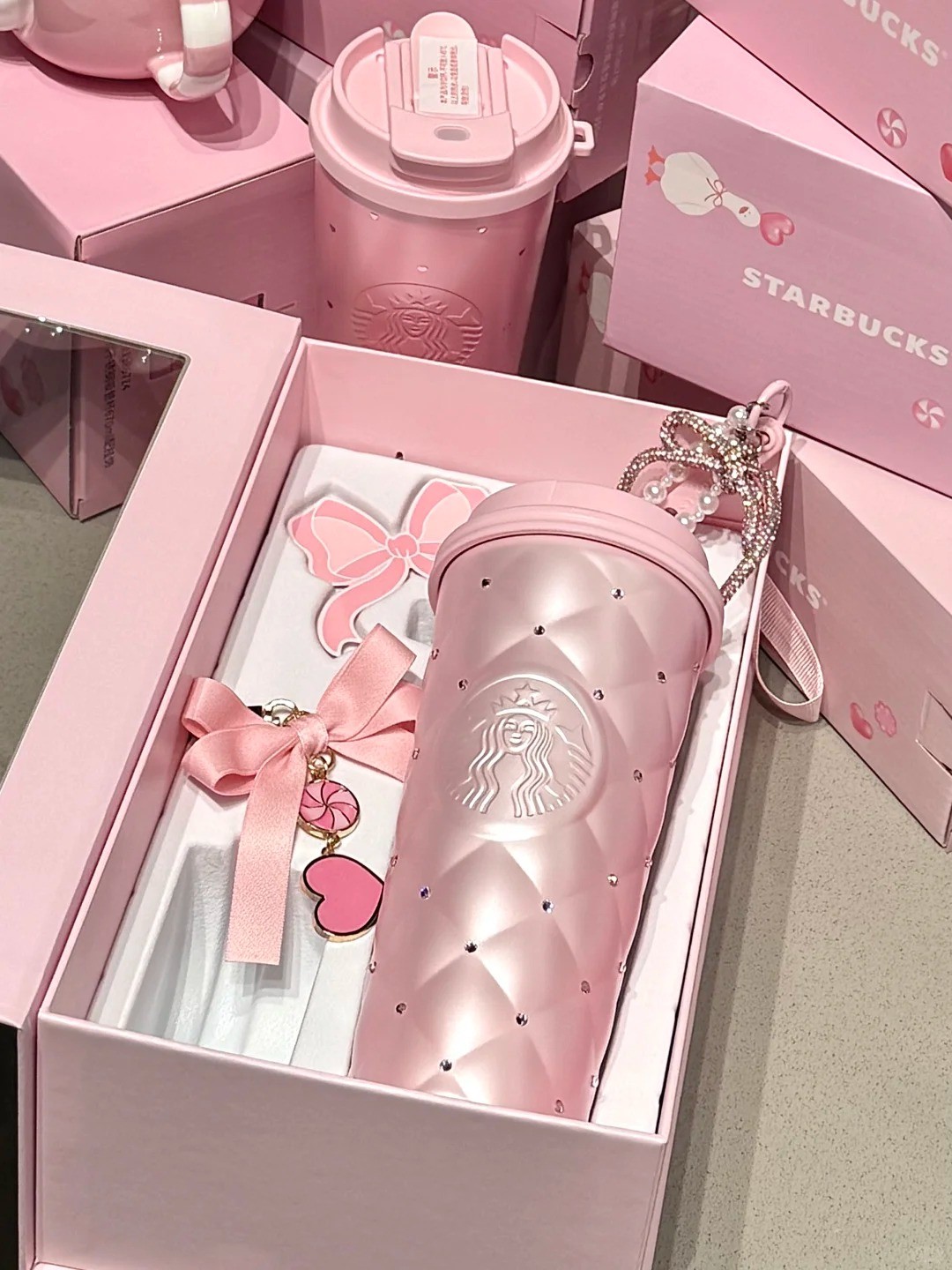 星巴克 情人节 噗噗鸭 不锈钢 贴钻双盖水杯 套装