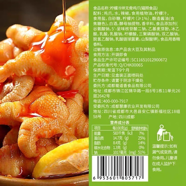 蜀道香柠檬冷拌去骨鸡爪200g 赏味期限 2026.3.28