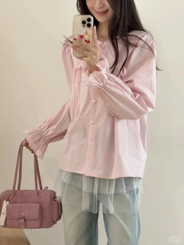 韩国女装 蕾丝花边衬衫 (限时7折 加入购物车自动减价)