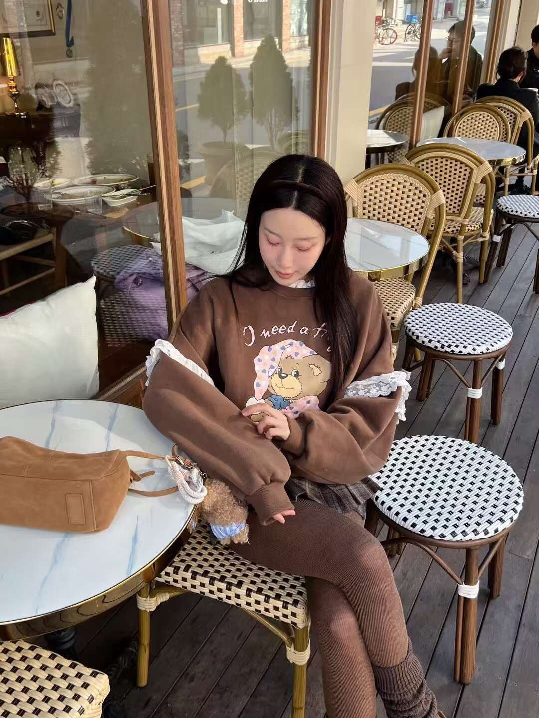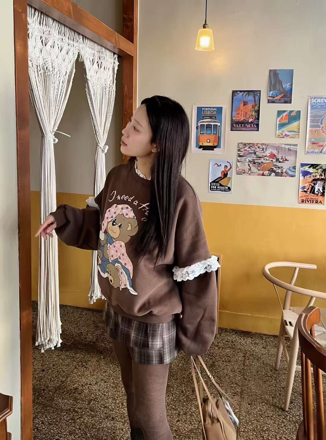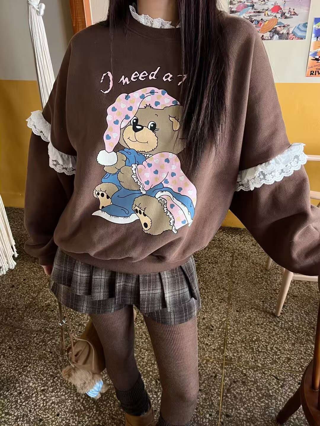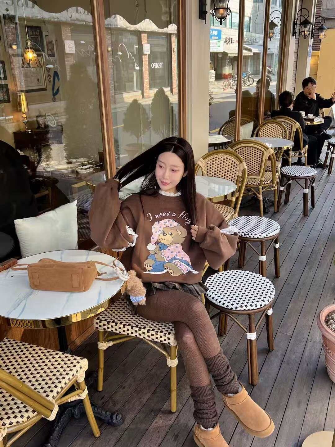 韩国女装 蕾丝花边 小熊 印花 卫衣 胸围150cm长70cm
