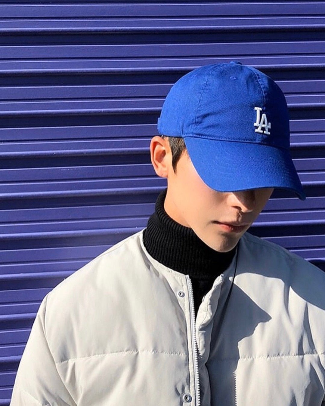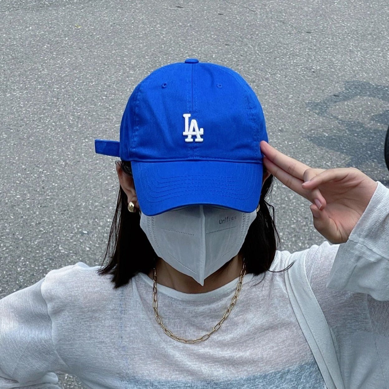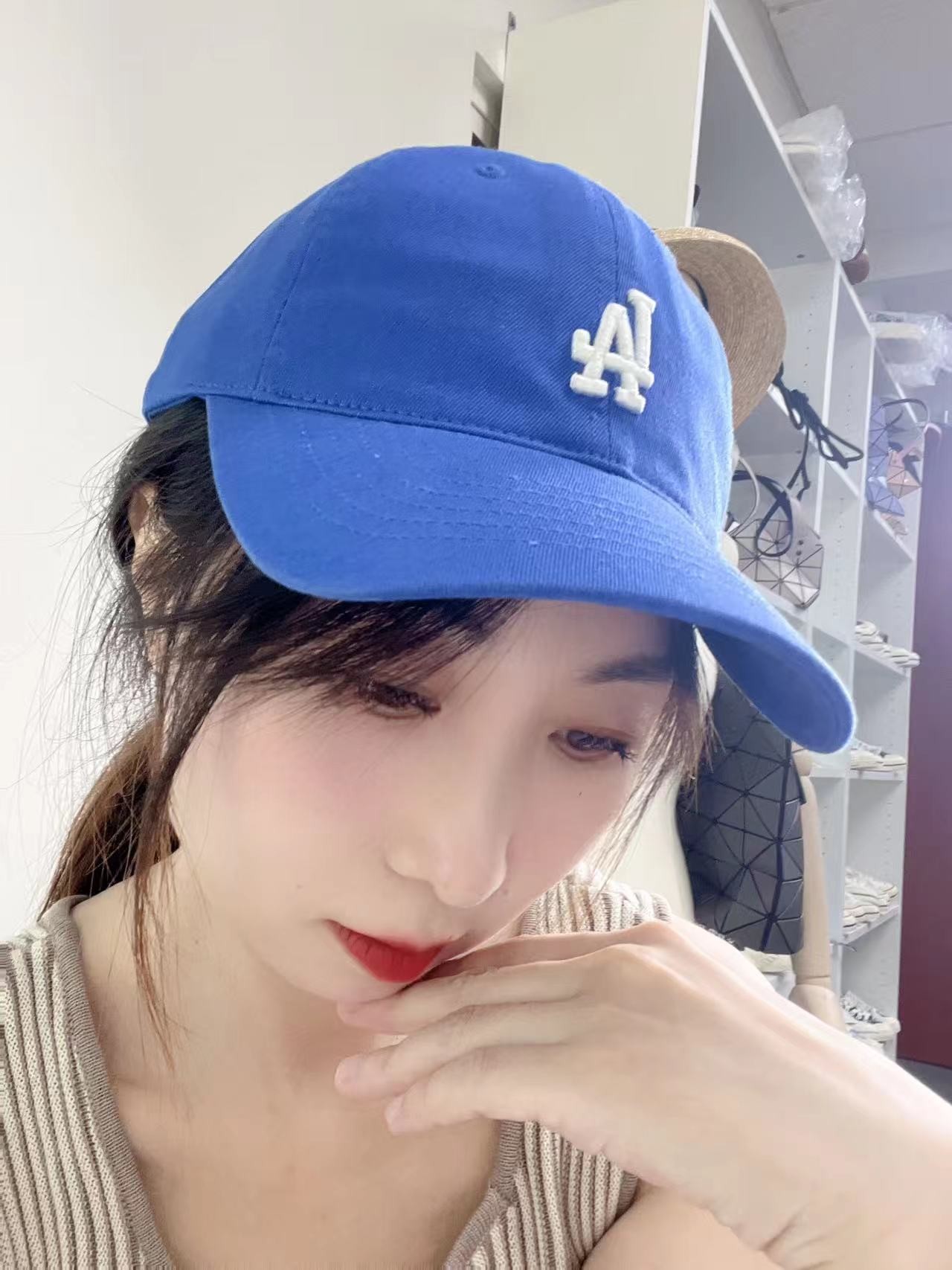 韩国 小标 宝蓝色 LA 帽子
