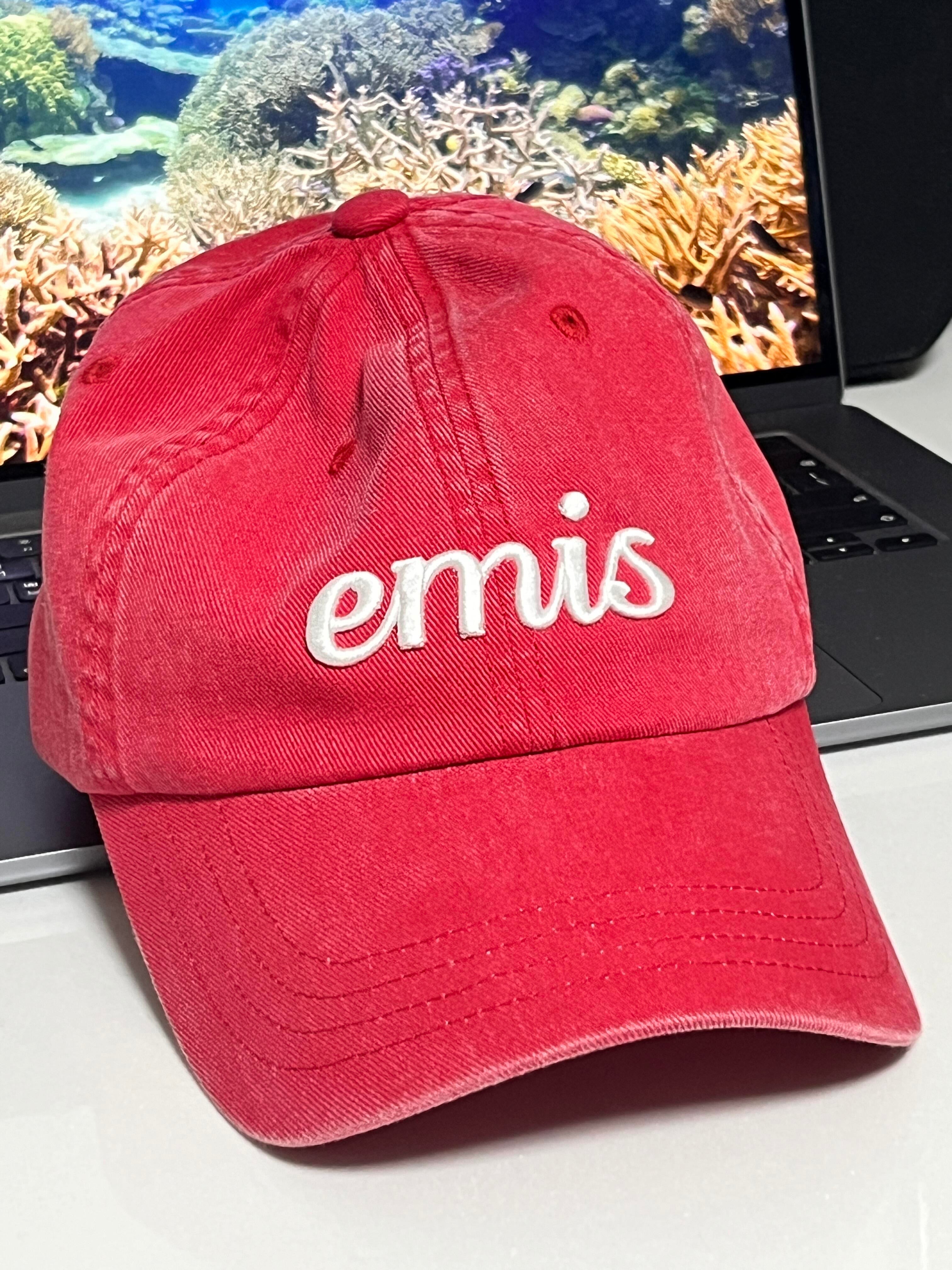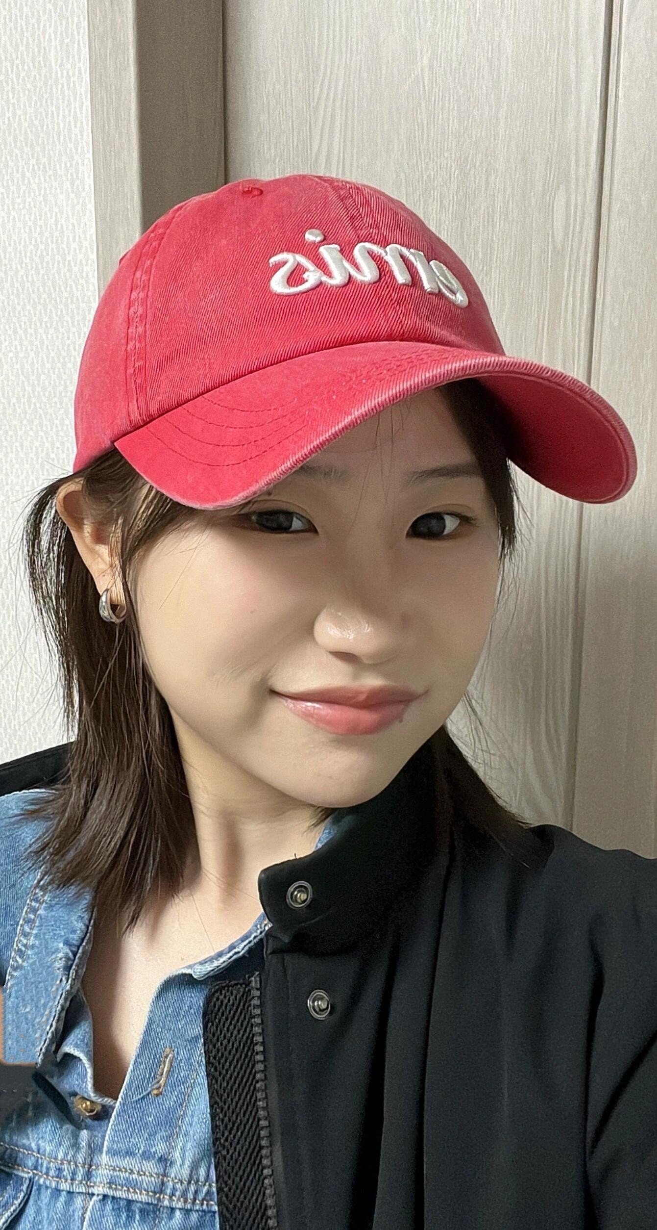 韩国 emis 棒球帽 新款 红色 做旧款 帽子