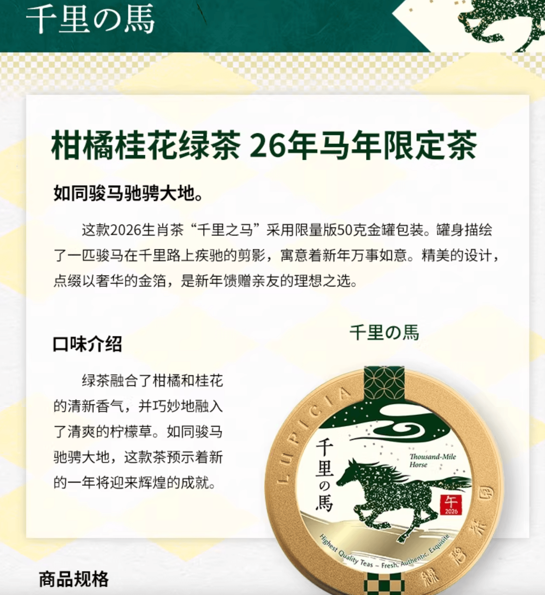日本 LUPICIA 26年 马年 限定 茶叶 套装