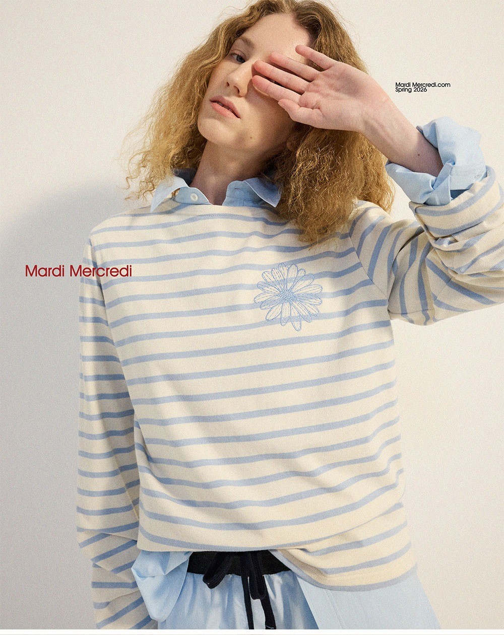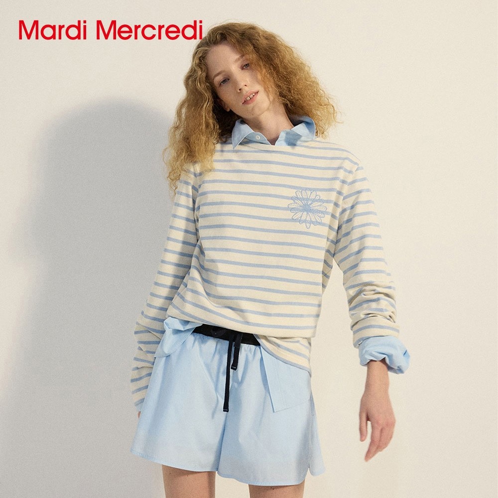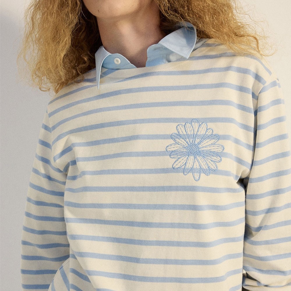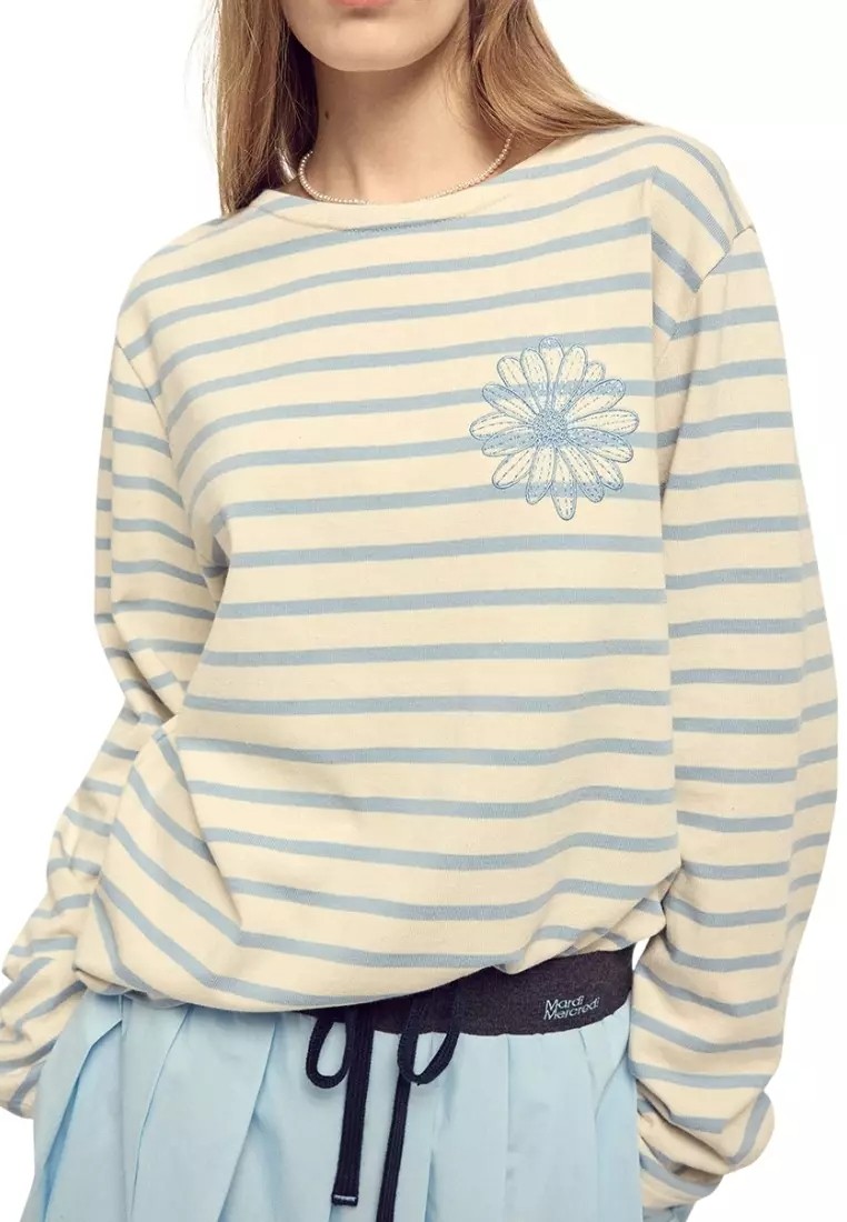 韩国 Mardi 春季新款 条纹长袖 刺绣 雏菊T恤 胸围104cm