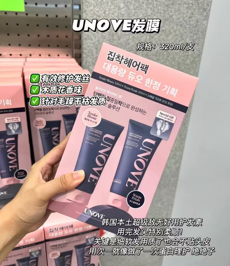 韩国 UNOVE 发膜 蛋白深层水分发膜 套盒 320ml+320ml Olive young人气必买 买一支送一支